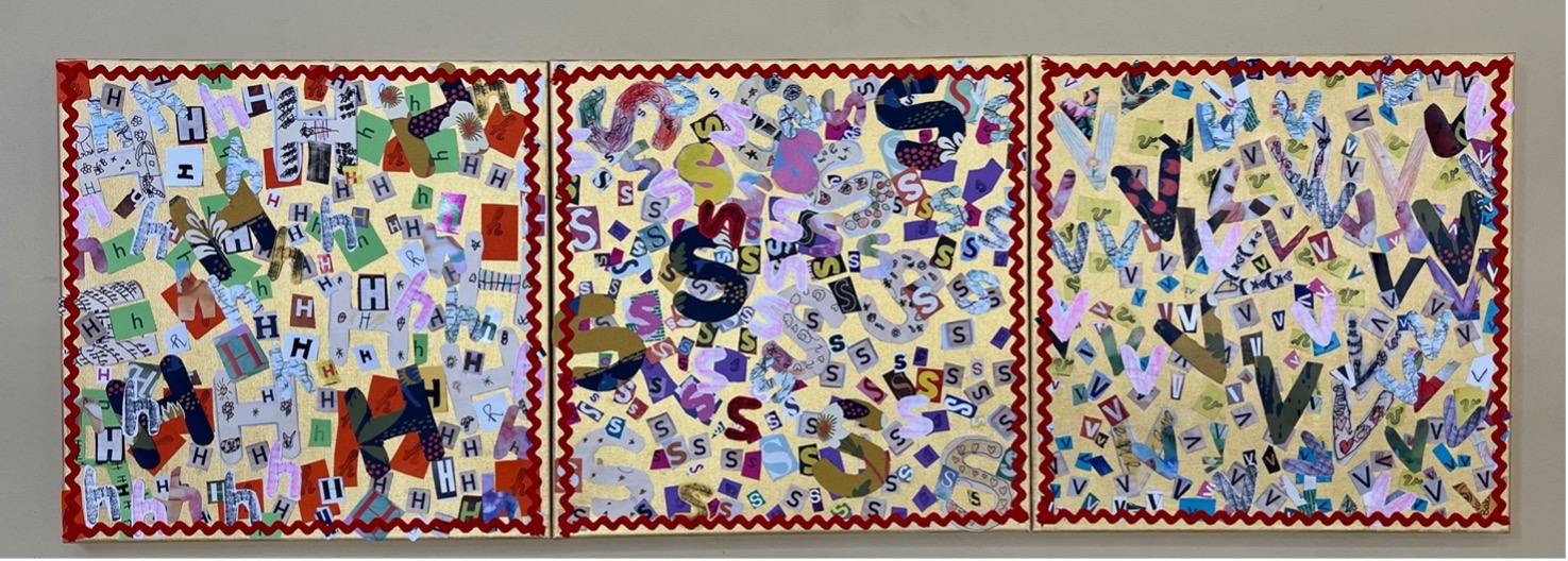 What’s in a name? In this case, it’s a joyful explosion of personality, glitter, and pure school spirit. This one-of-a-kind three-panel art work features the name of our beloved school, but look closer: each letter is a “mini-masterpiece” designed and decorated by an individual student.  When brought together, these individual letters form proud statement of community.