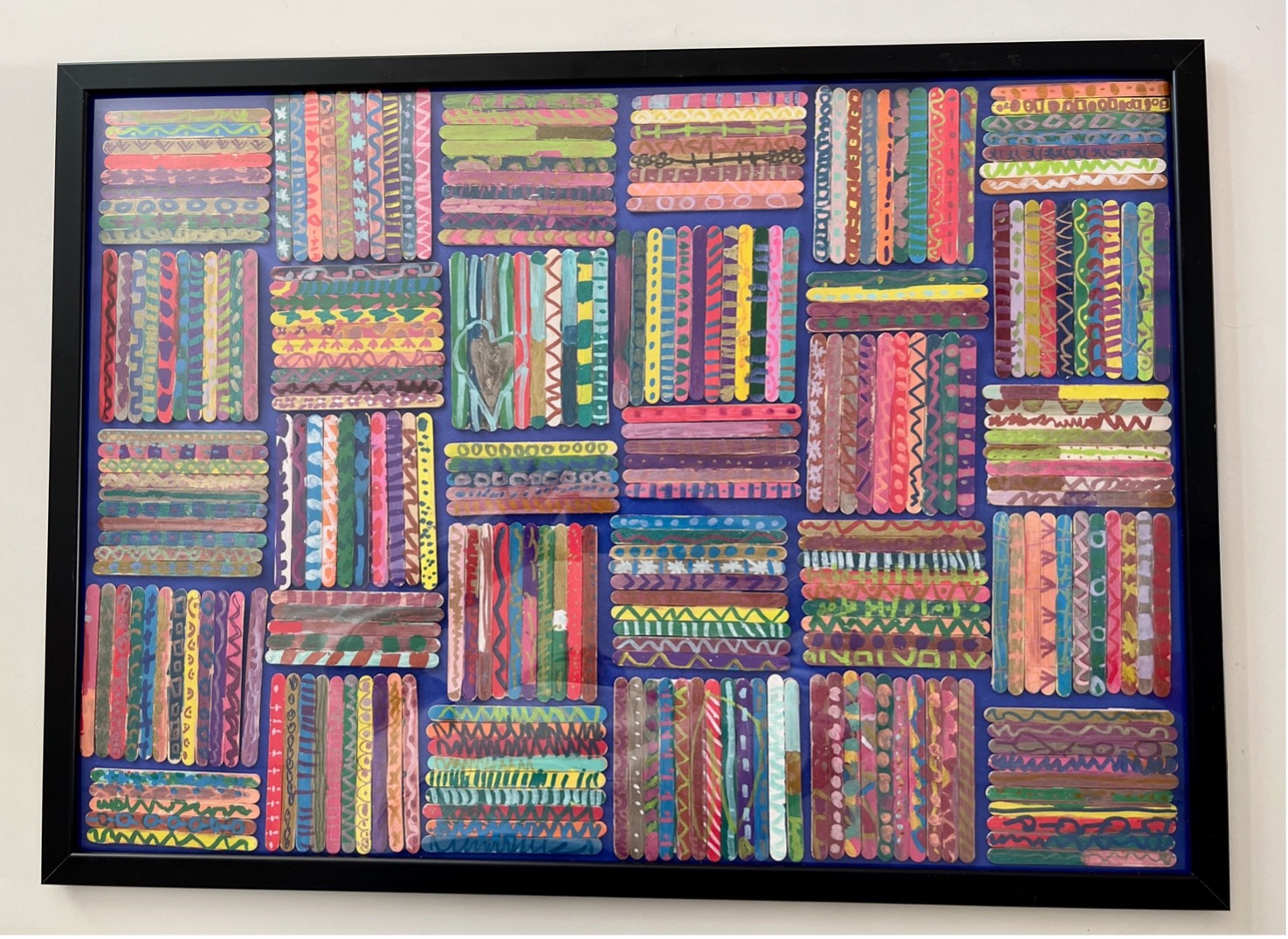 The visionary artists of NA2 have taken the simplest elements of nature—the humble stick—and transformed them into a vibrant explosion of joy. Every single stick in this frame was hand-selected, smoothed, and decorated with a unique pattern. Some are bold and geometric, others are soft and blended, but together? Together, they create a stunning visual rhythm that dances right off the wall.
